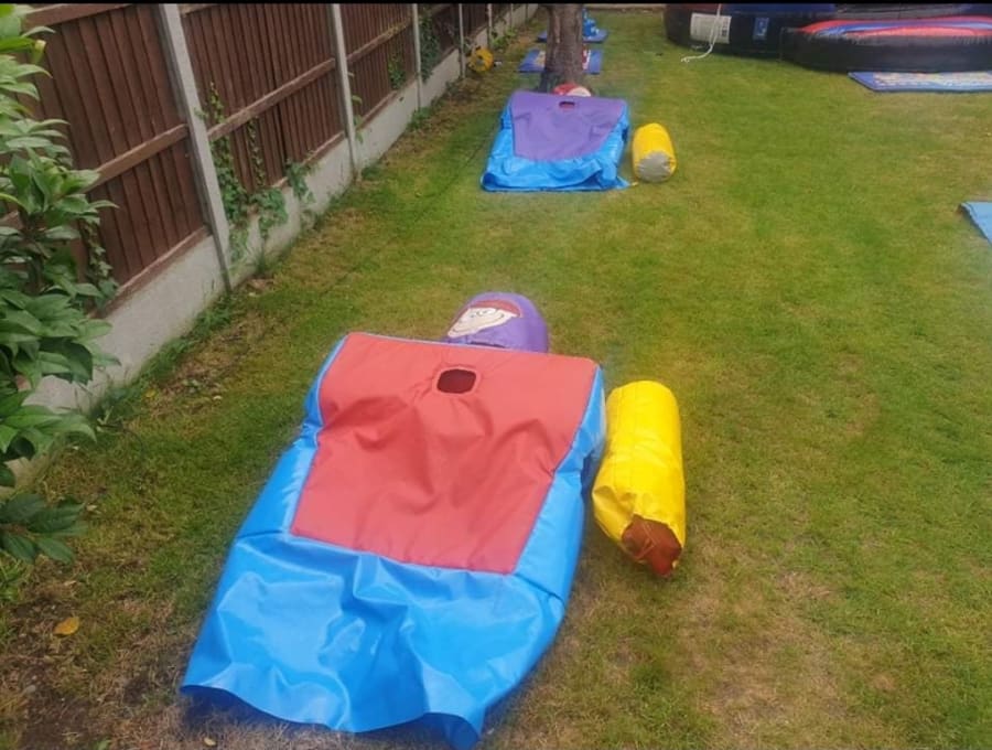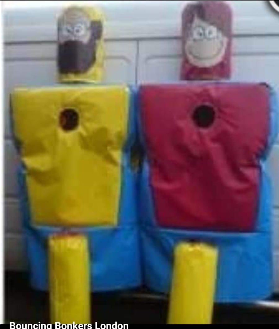 The players are inside the suits and the heads sit on top and held on with velcro. Once the head has been hit, it will fall off.