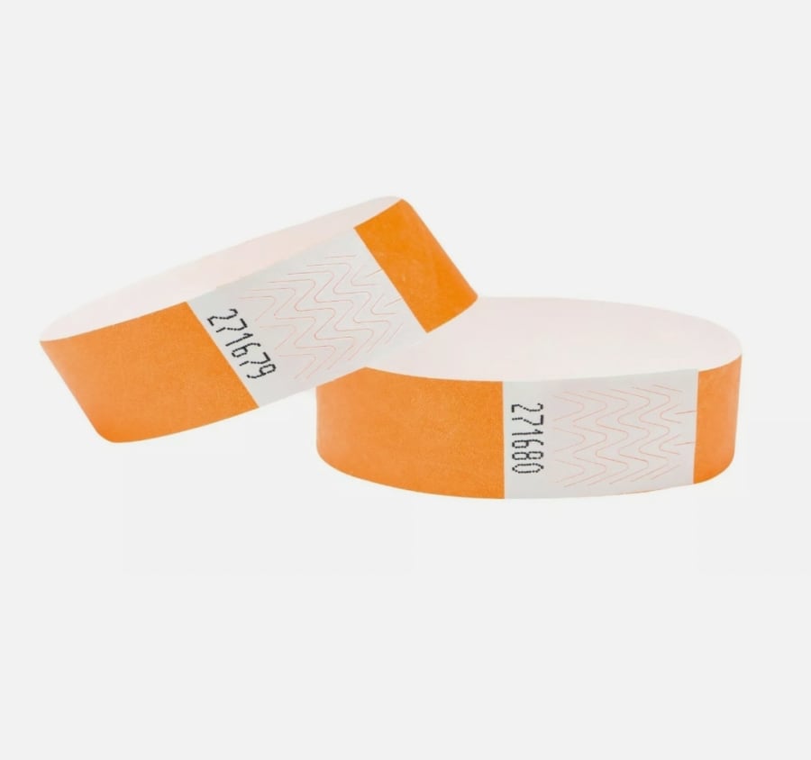 Neon Orange (25mm wide) Plain Tyvek Wristbands ideal for Festivals, event, parties and security.