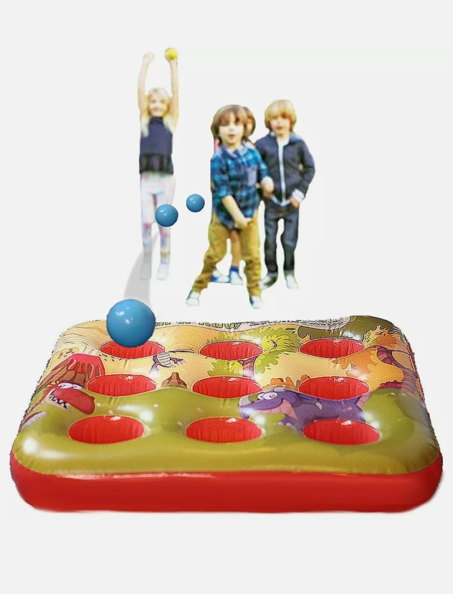 With our inflatable games for children you can play not one, but two games: 'Three in a Row' and 'High Score'. With 'Three in a Row' each player choose a ball's colour and throws at the targets until someone gets three in a row in any direction. With 'High Score' each player throws their three balls and sums their score from the number next to the holes; the second player will need to beat that score to win