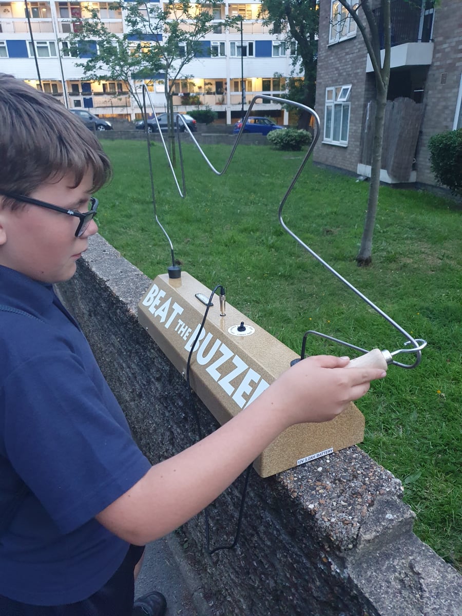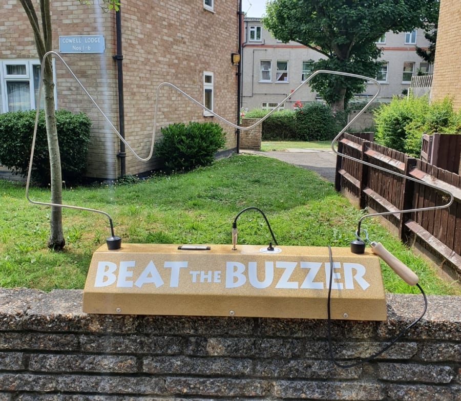 Beeps loud plus has flashing light, the loudness of this is quite load to scare the person using it, this adds to the pressure of trying to get all the way round without touching the sides.