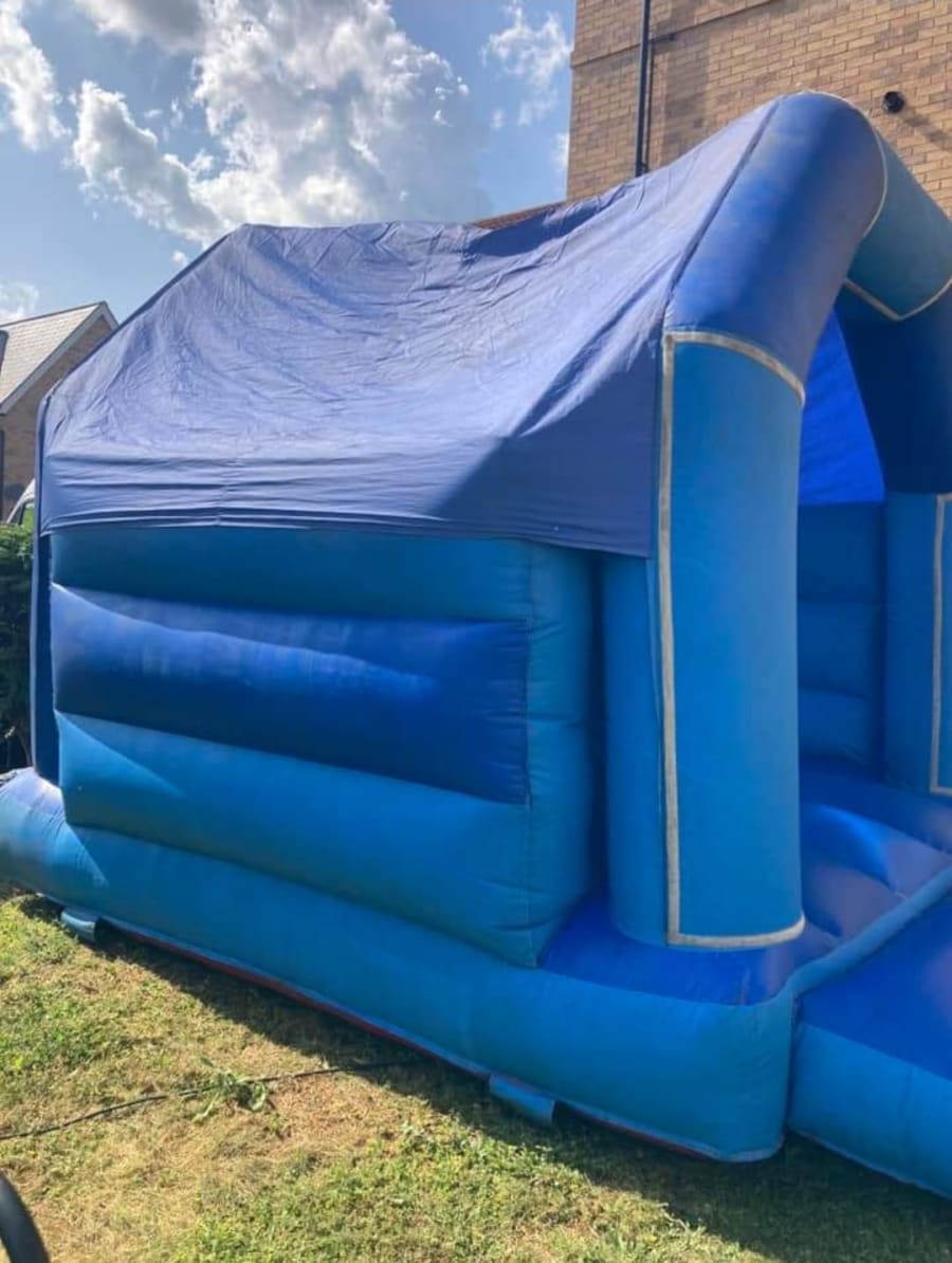 Plain blue 10ft x 11ft bouncy castle.