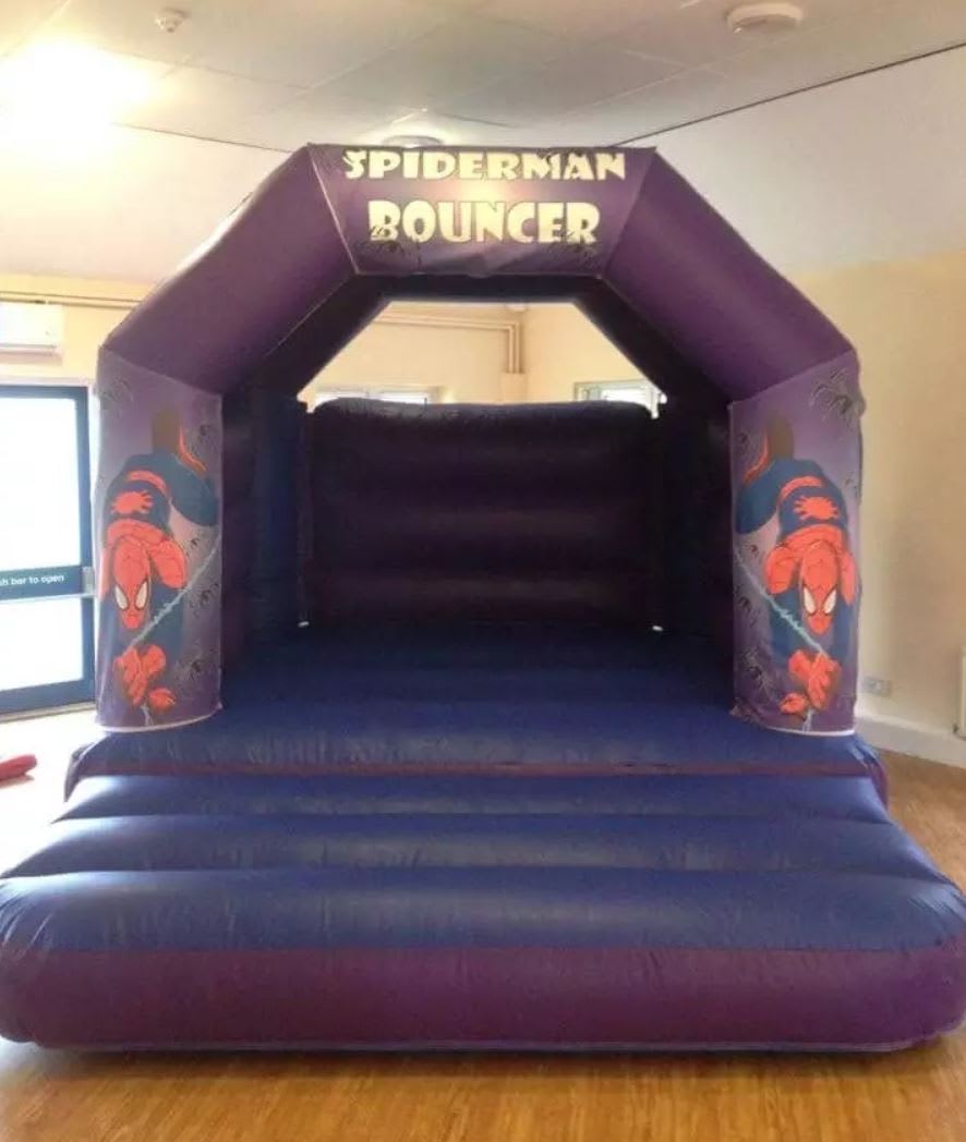Spiderman Multi Themed Bouncy Castle with rain cover 10ft wide x 8ft deep x 10ft high.