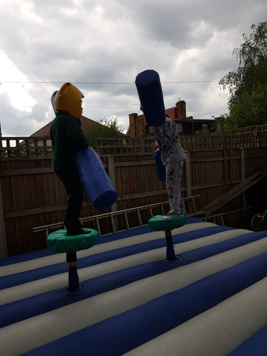 We also have 1 x American Duel stick too. Size is 12ft x 18ft. Suitable for Adults and Children. This is great fun for all to enjoy in garden parties, School fates and all other events. The Gladiator Duel is Definitely a test for skill and balance. Do you have what it takes to win battle after battle and become the Gladiator of Rome. This Gladiator Duel fits most gardens so dont feel you cant hire it, contact us with measurements or send us a photo of your garden and we will tell you if it will fits. You really dont want to miss out on this fun Game.
