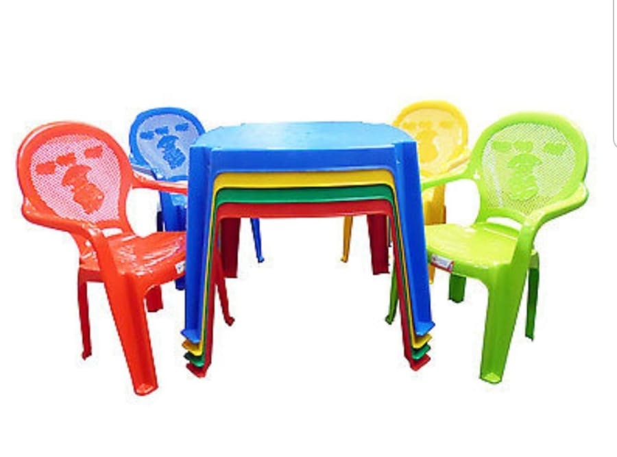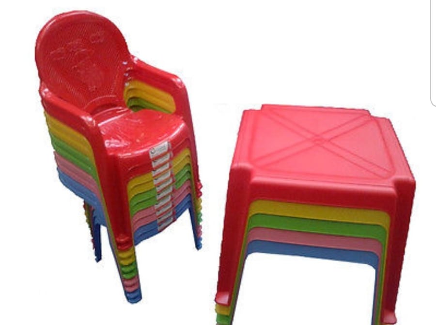 Upto 10 x multi coloured chairs and 6 x coloured tables.