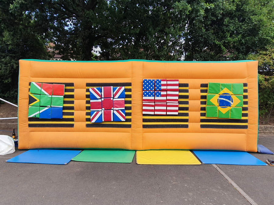 Team Building game, this is a great game for all to play. There are Four Flags in total. Its a race against time to beat the other players, then you can switch players and flags if you want too. This is a great game to be played at school events, fairs, or even private parties.