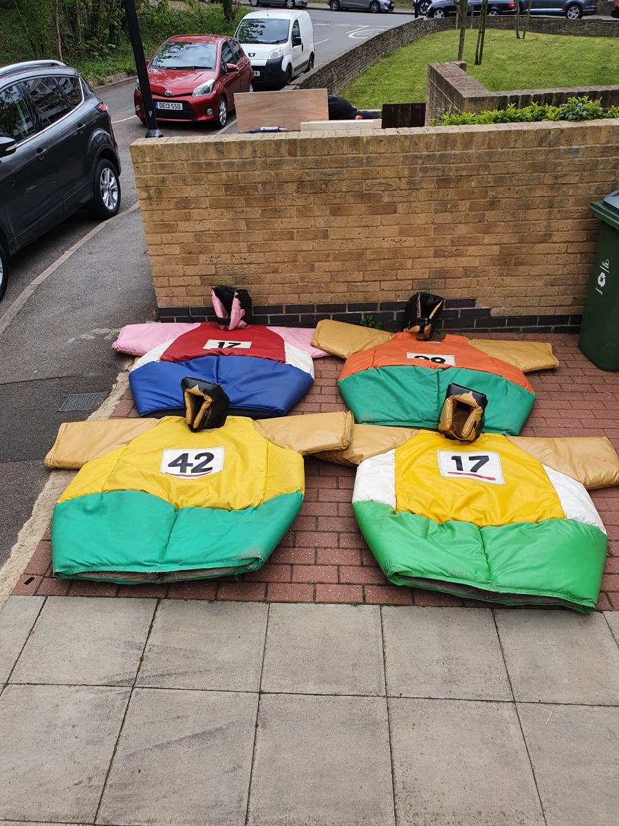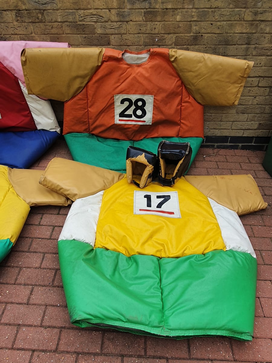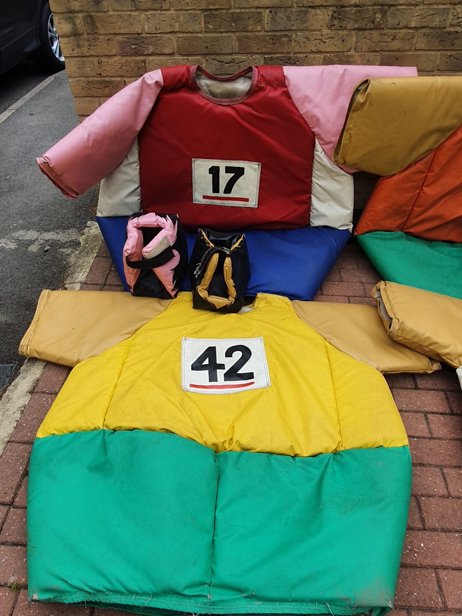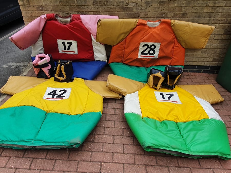 Its the Olympics. Thats right the Olympics has come to Bouncing Bonkers London, four running suits with heads. This will be fantastic fun at your events, these are built like Sumo Suits, so big heavy and fun to run in. Book now with Bouncing Bonkers London. Find us on Facebook as Bouncing Bonkers London or on our website www.bouncingbonkerslondon.co.uk