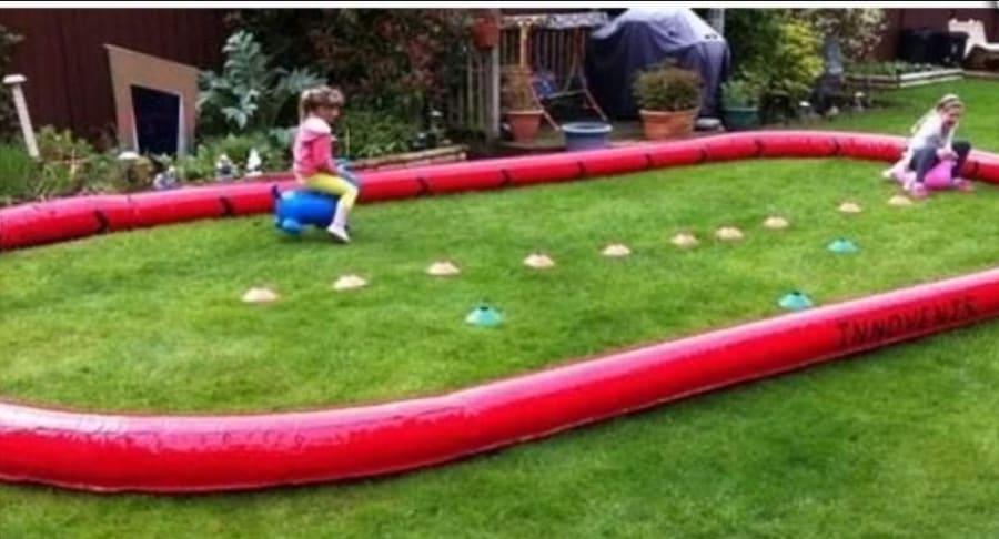 Why not book our red race track for the extra fun, you can also have extra Ride on Animal Hoppers or Space Hoppers to go round the track with.