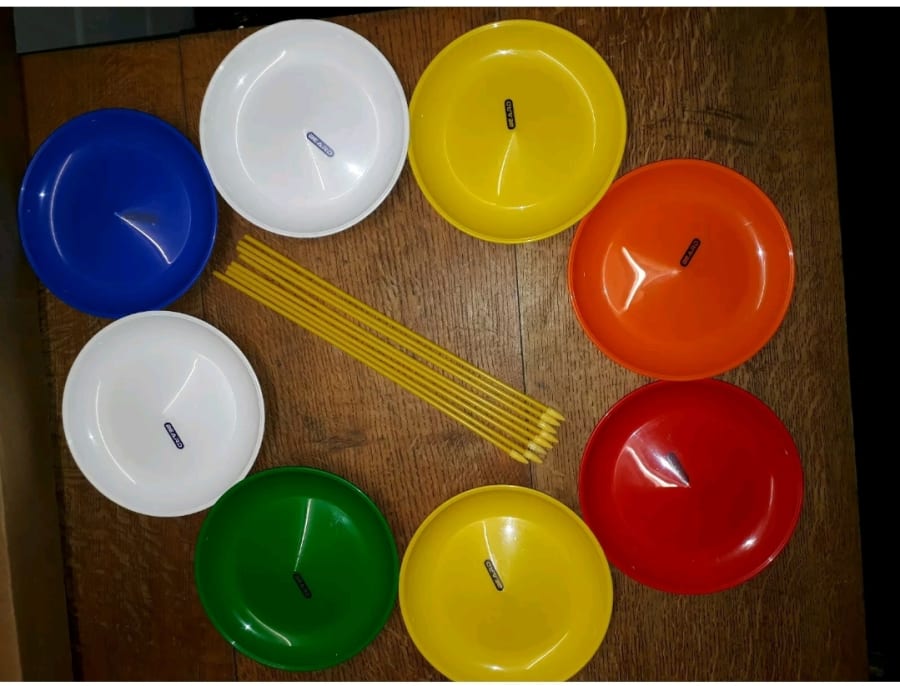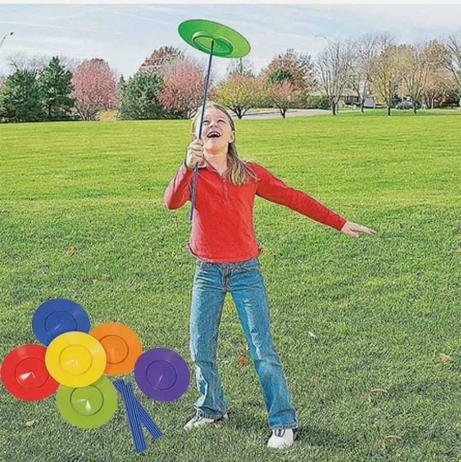 FAMILY FUN Fantastic for beginners, children and adults. The ideal toy to entertain family and friends. Once kids master the relatively simple art of getting the plate to spin, the next goal is to keep the spinning as long as possible! We can assure you that this set will bring hours of fun to your home. LEARNING FEATURES Help your kids improve their hand-eye coordination, endurance, balance skills with this lovely plate spinning set. Teaches children patience, care, and coordination while having fun. It is an ideal learning set that will keep your kids entertained for hours! DIMENSIONS The plates measure approx. 17cm across. The spinning sticks are 39,5cm long. These plates are from a soft polyethylene composite designed to be slightly flexible to help prevent any injury when learning to spin. This lovely set is portable and easy to store. SET INCLUDES 8 x Plates and 8 x Spinning Sticks. Each plate is provided with a flexible spinning plate stick for you to start spinning straight away. Suitable for ages 3 and up. Our spinning plates set is just perfect for family picnics, birthday parties, barbecue activities, class break activities, etc.