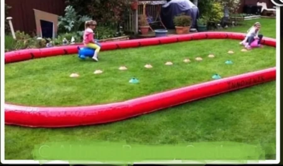 Why not hire these Motor Bikes with our Didi Cars, Scuttlebugs, Ride on Animal hoppers or our Vintage Classic Racing Cars along with our inflatable Race Track as pictured below.