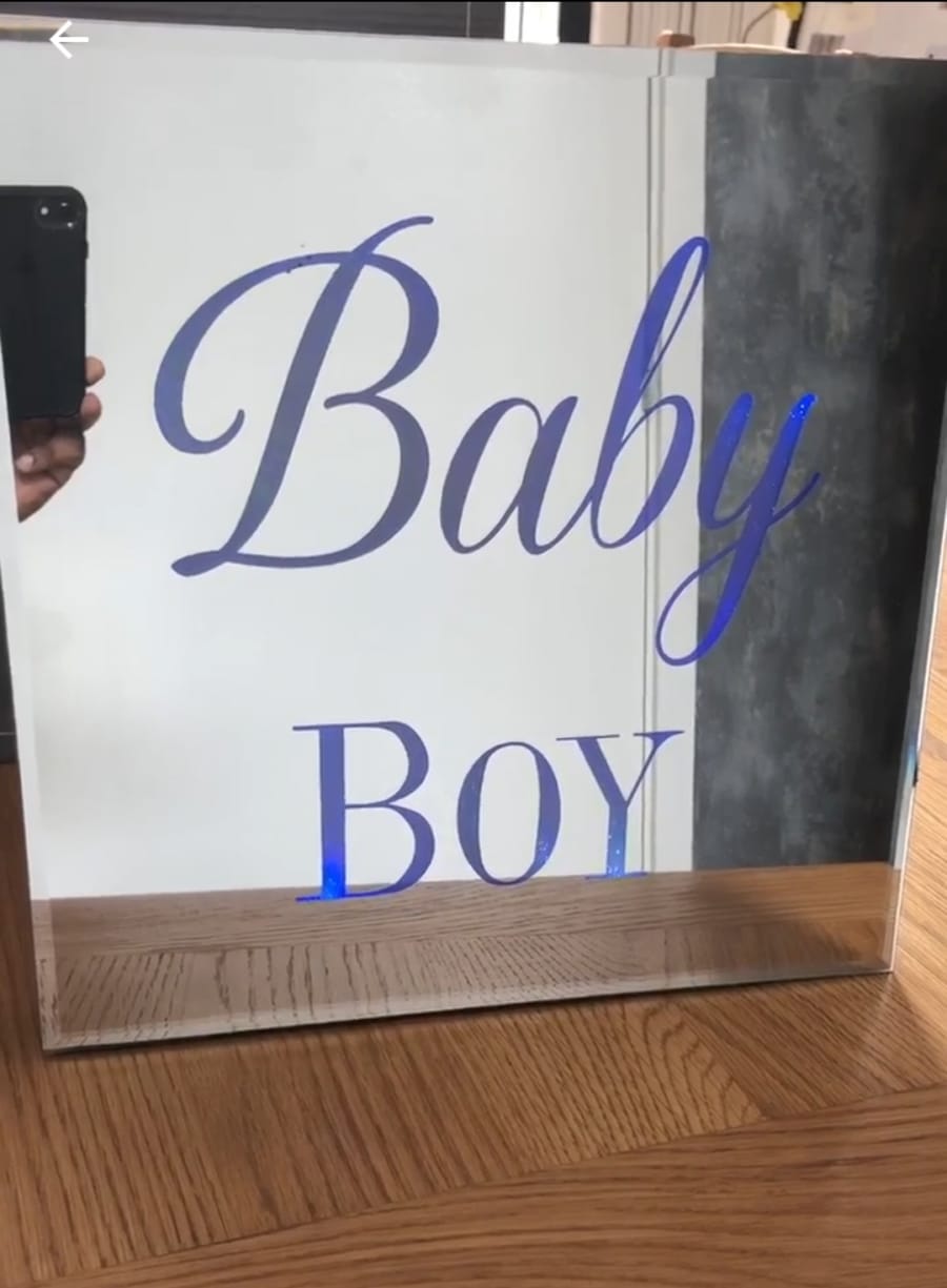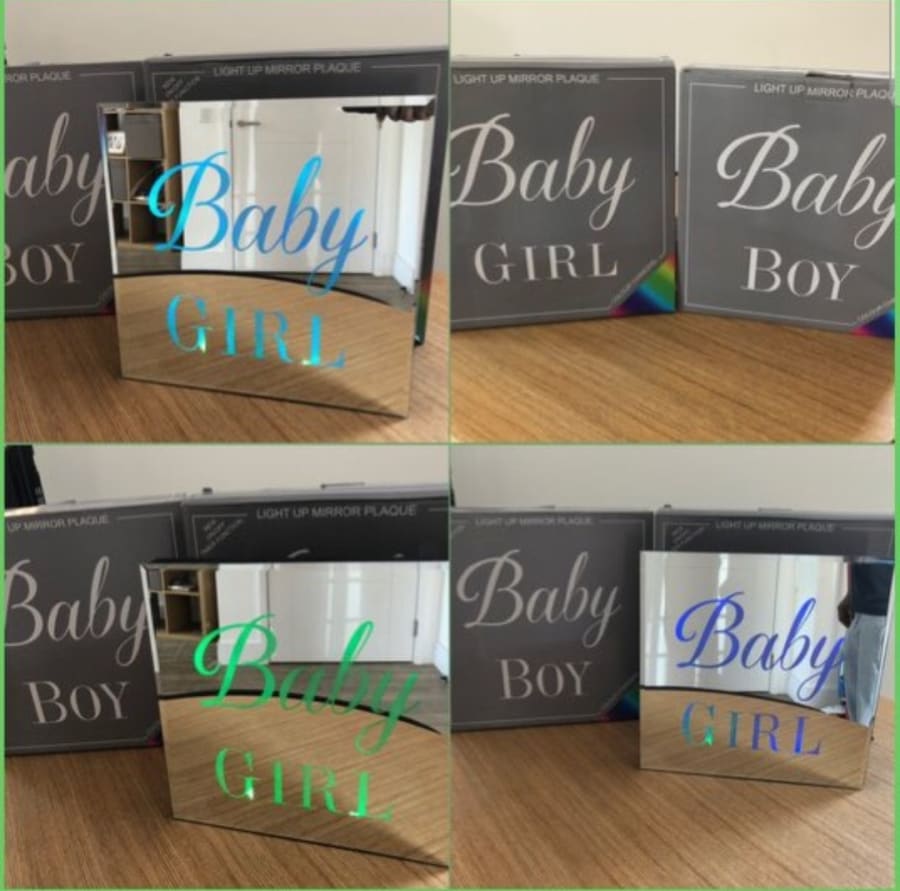 Baby Boy or Baby Girls Mirrored Colour changing LED light box for hire.