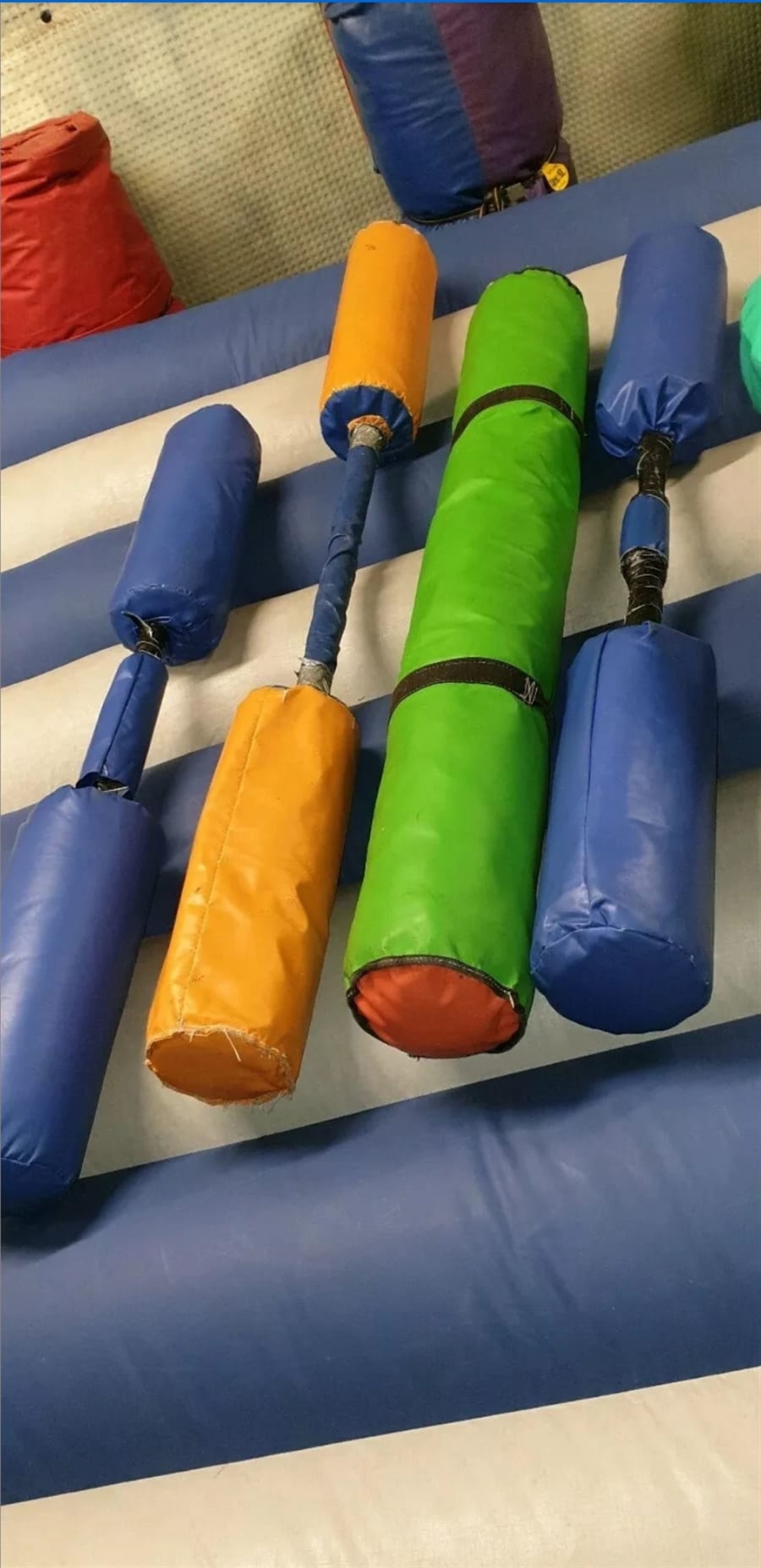Gladiator Duel comes with 2 x safety hats and 4 x Duel Sticks and 2 x safety mats.