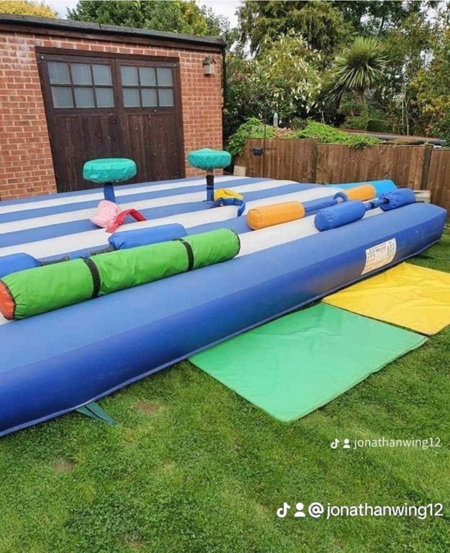 We also have 1 x American Duel stick too. Size is 12ft x 18ft. Suitable for Adults and Children. This is great fun for all to enjoy in garden parties, School fates and all other events. The Gladiator Duel is Definitely a test for skill and balance. Do you have what it takes to win battle after battle and become the Gladiator of Rome. This Gladiator Duel fits most gardens so dont feel you cant hire it, contact us with measurements or send us a photo of your garden and we will tell you if it will fits. You really dont want to miss out on this fun Game.