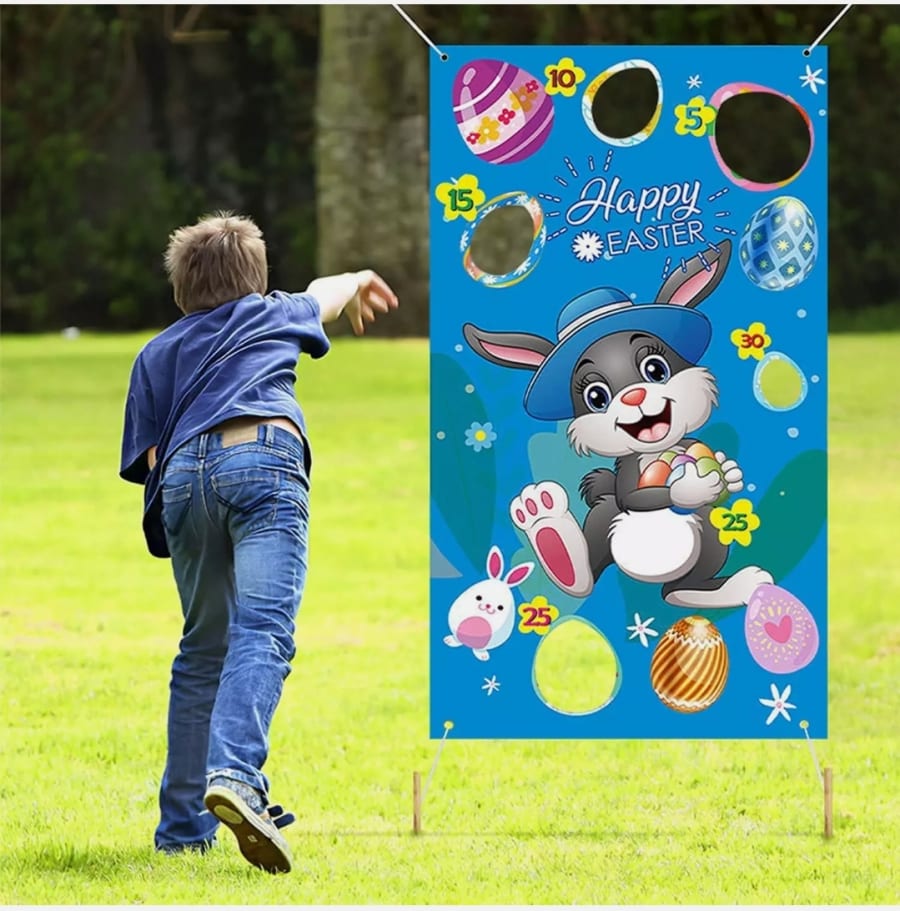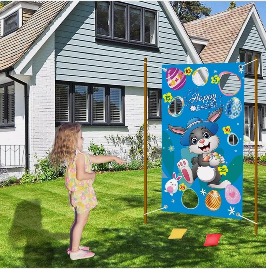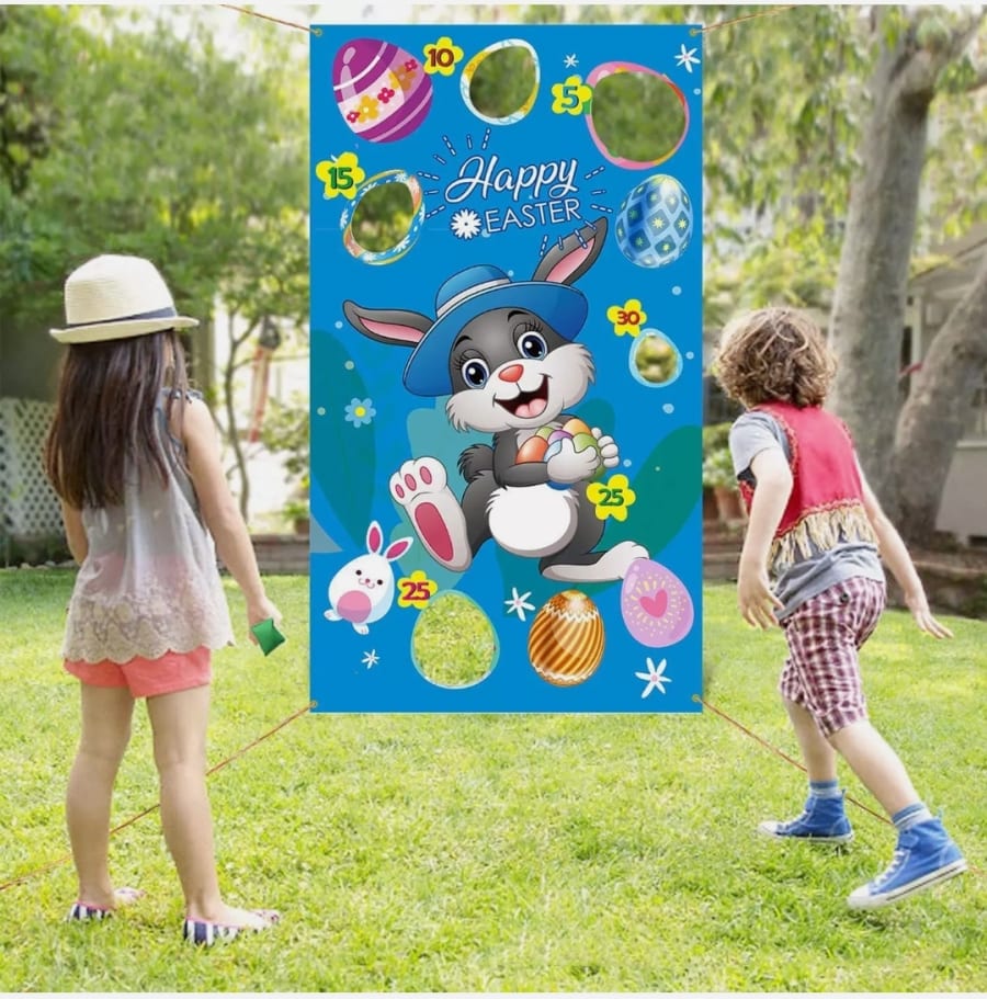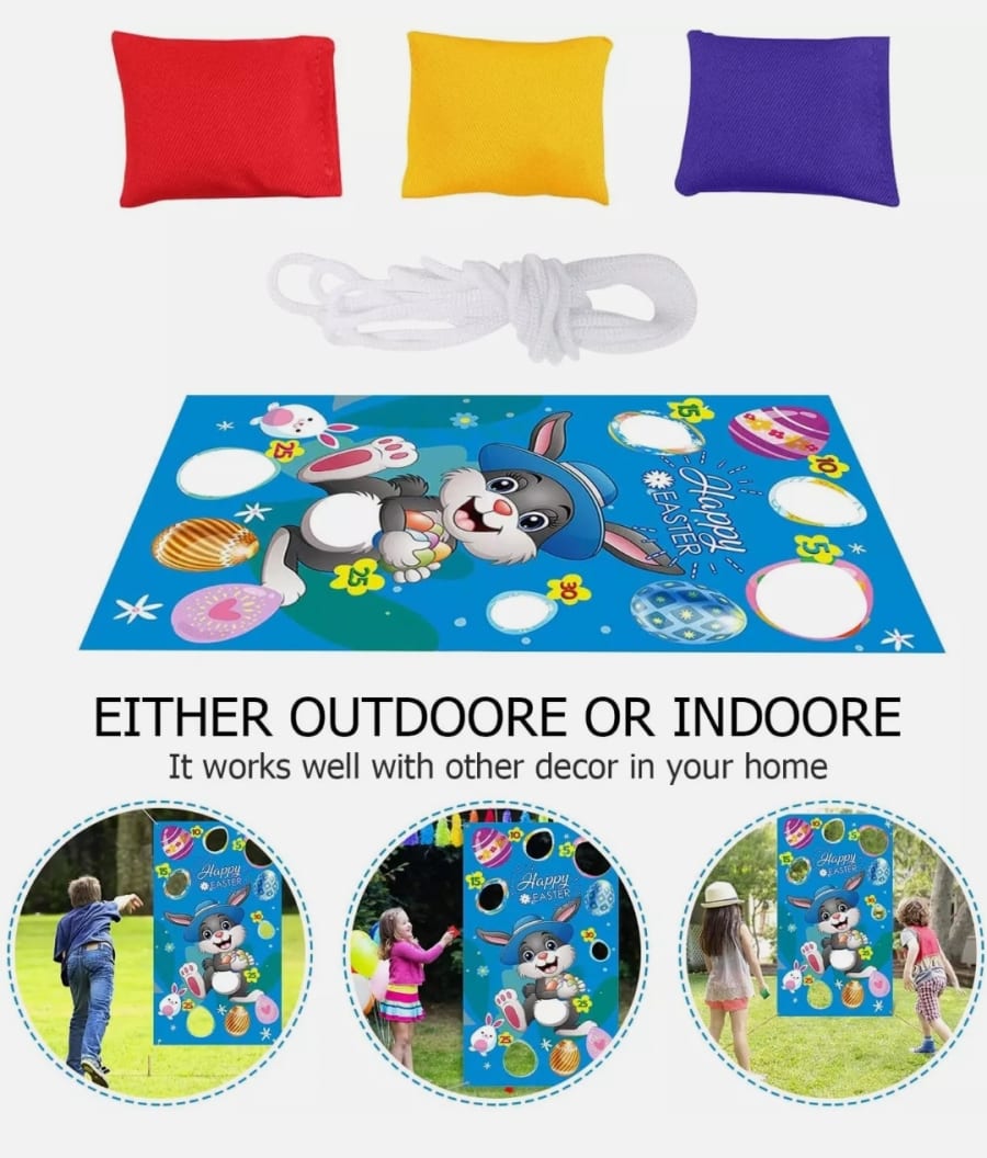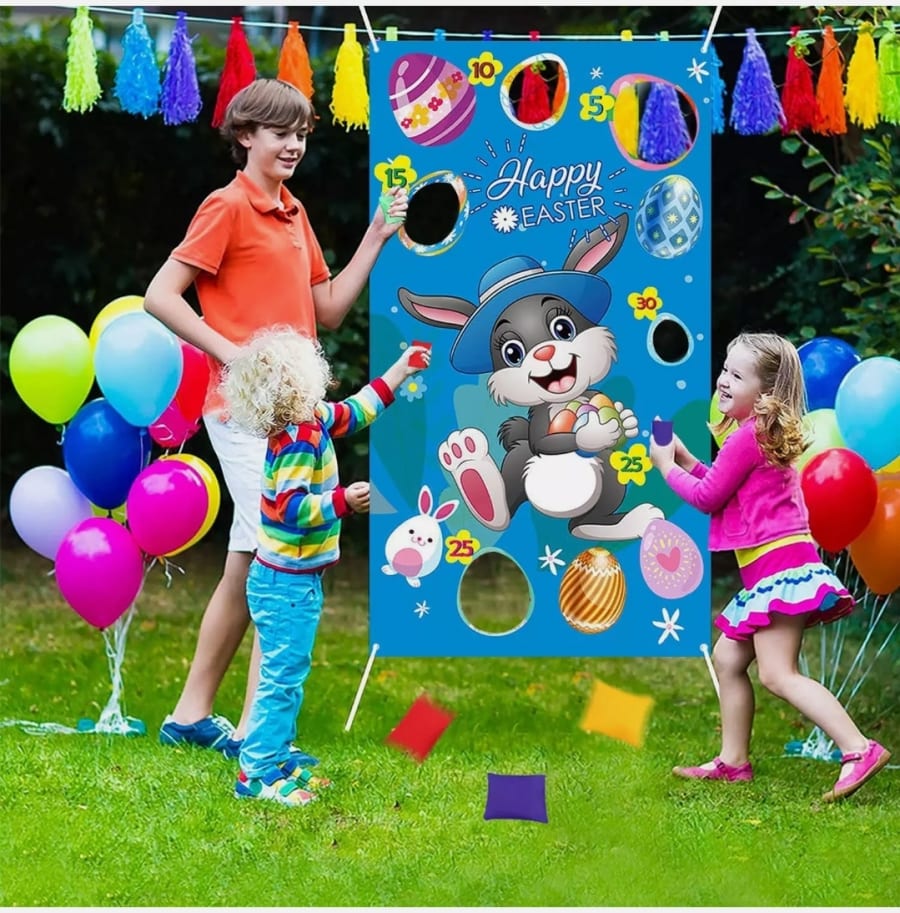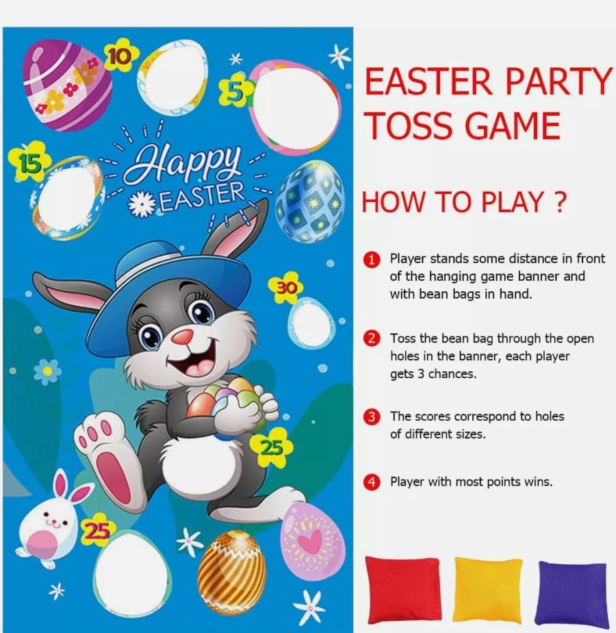 Abnaok Easter Toss Game with 3 Bean Bags, Fun Easter Carnival Party Throwing Game Toss Games Banner for Children and Adults to enjoy.