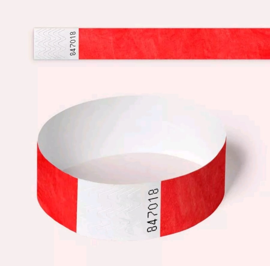 Red (25mm wide) Plain Tyvek Wristbands ideal for Festivals, event, parties and security.