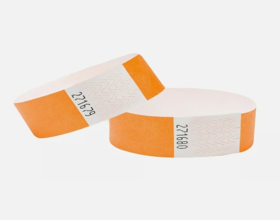 Neon Orange (25mm wide) Plain Tyvek Wristbands ideal for Festivals, event, parties and security.