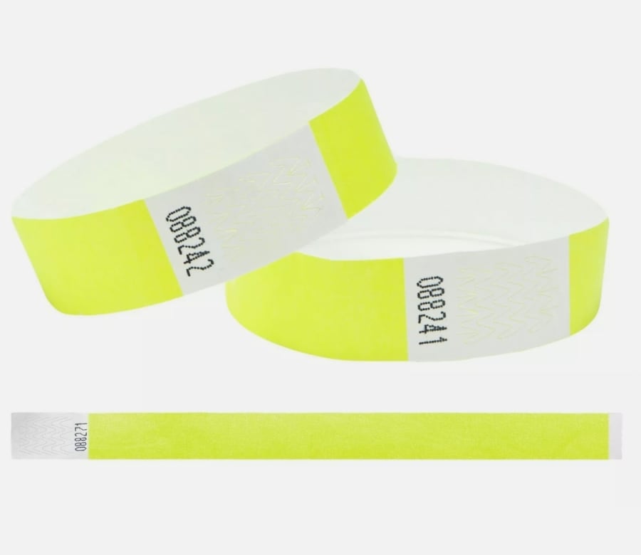 Neon Yellow (25mm wide) Plain Tyvek Wristbands ideal for Festivals, event, parties and security.