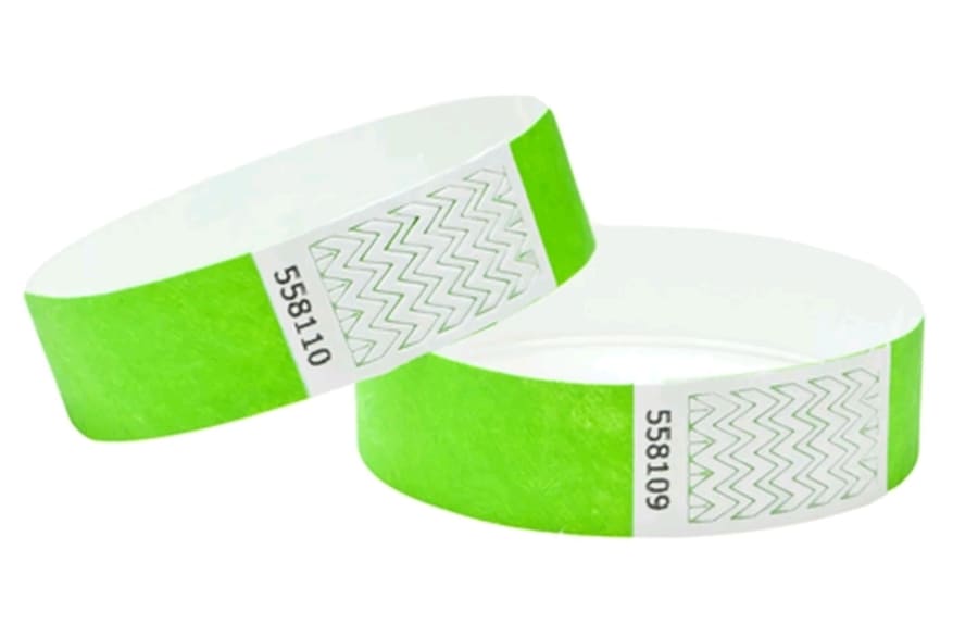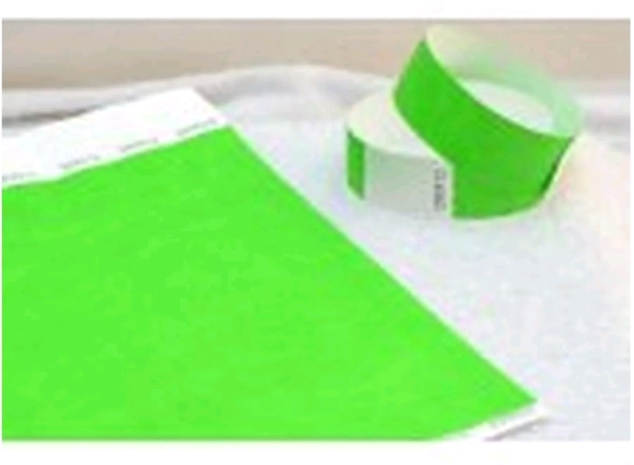 Neon Lime (25mm wide) Plain Tyvek Wristbands ideal for Festivals, event, parties and security.