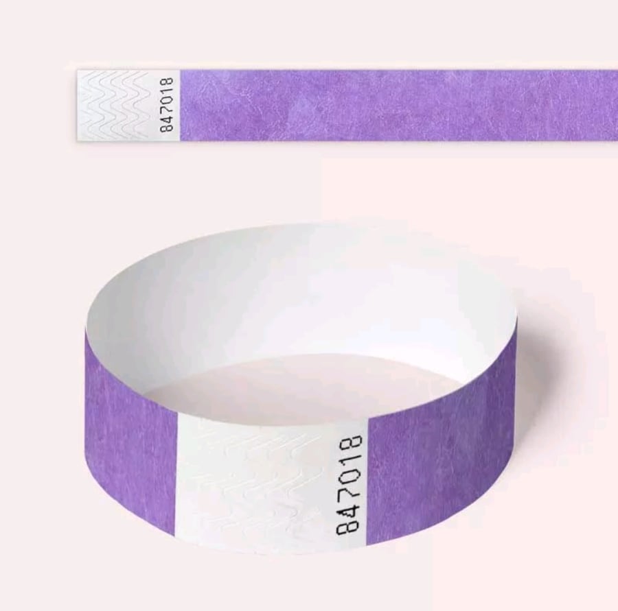 These are available in packs of 100 wristbands.
