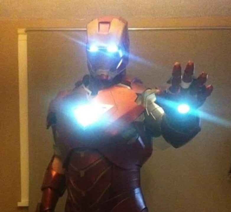We also have iron mans glove with the stones and they all light up. This looks fantastic.