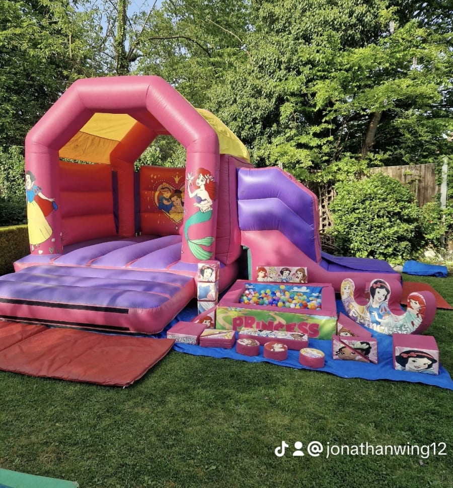 1 x Princess Bouncy Castle and Slide Combi. 18ft wide x 15ft deep.