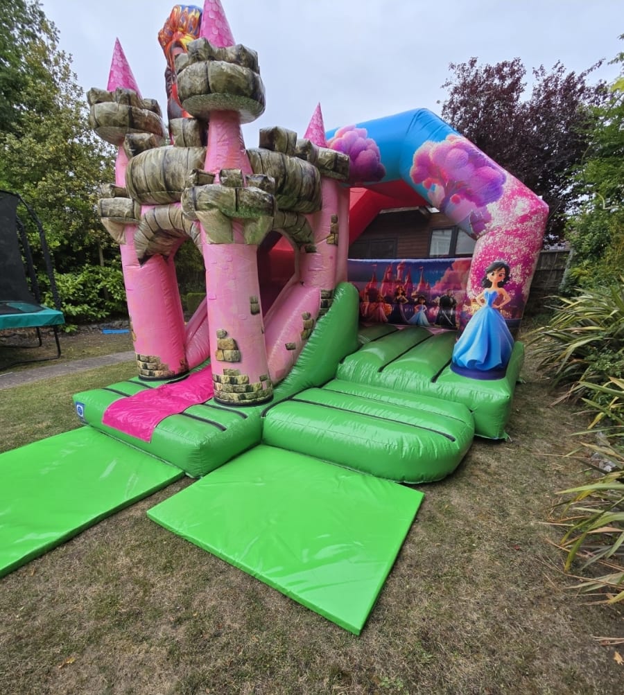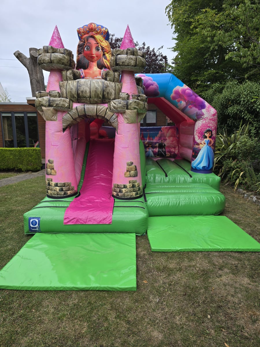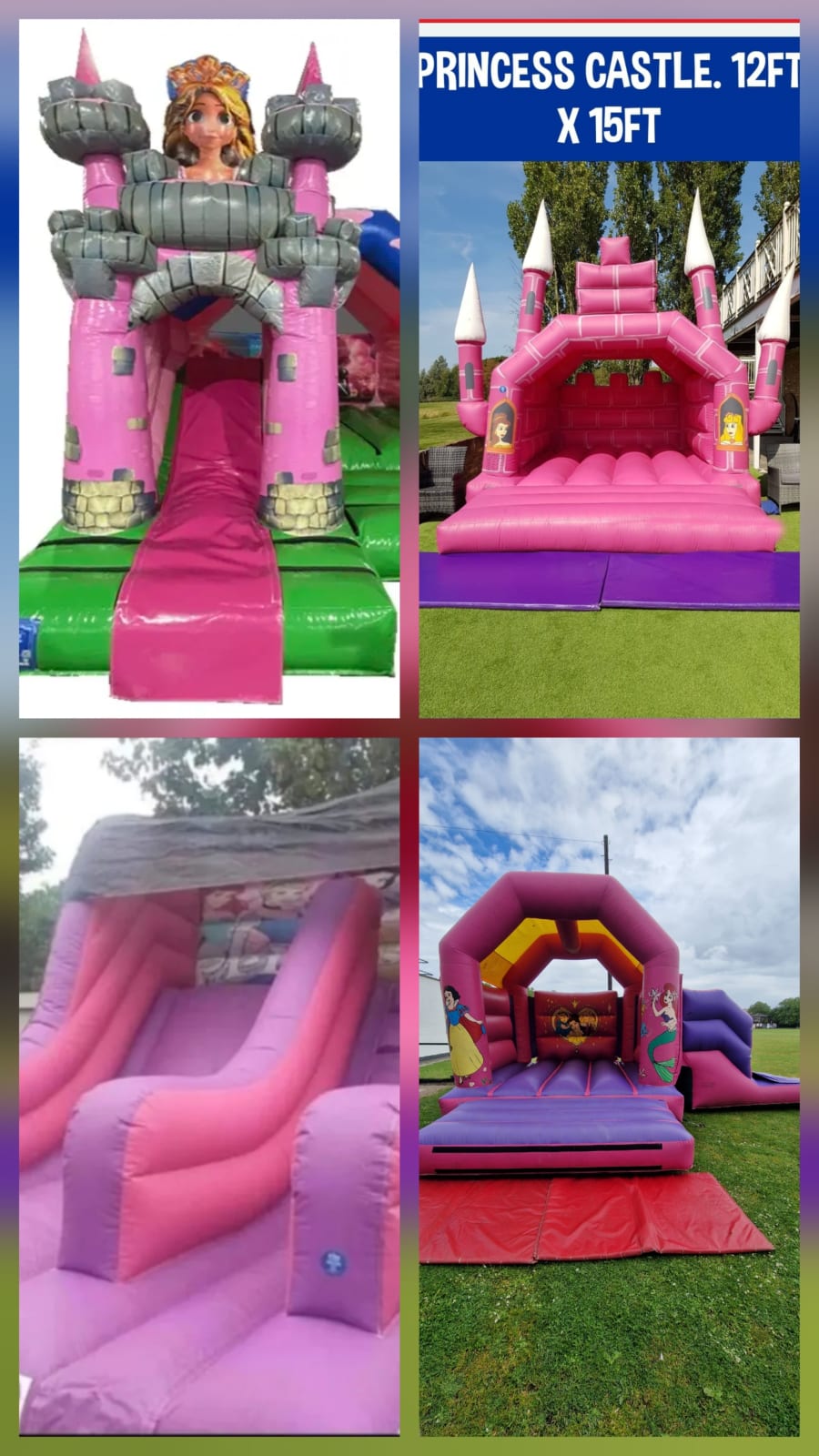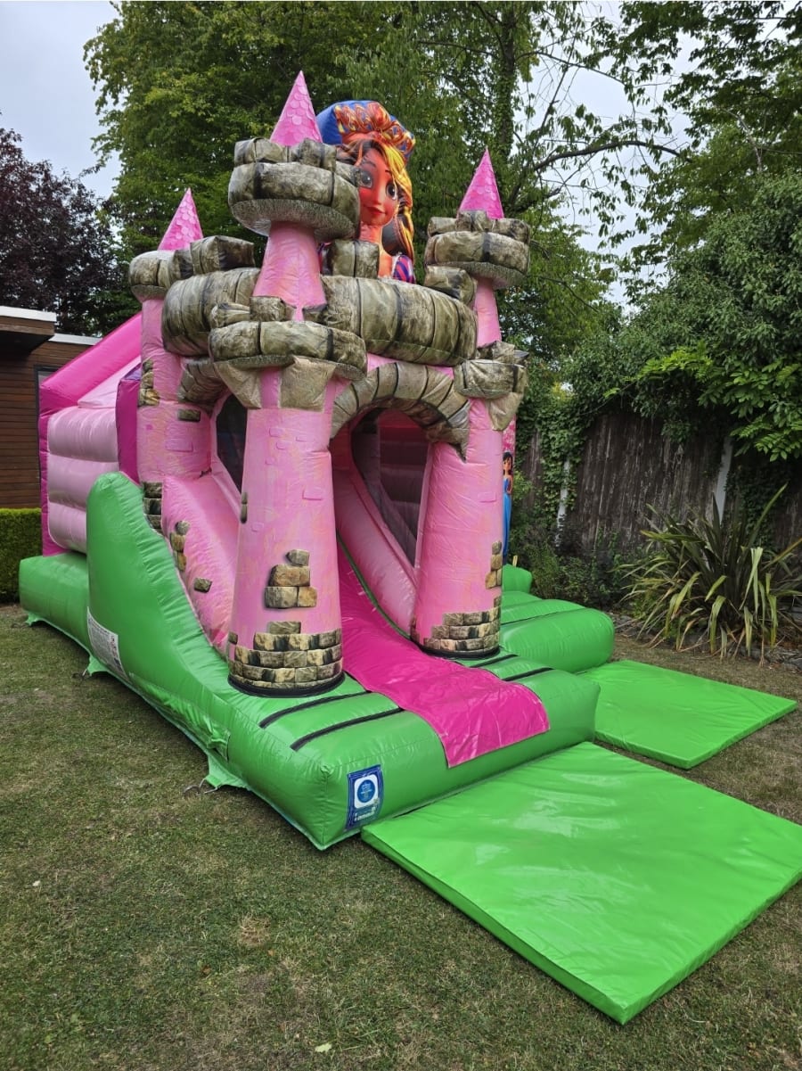 2 x Princess Bouncy Castle and Slide Combi,s.