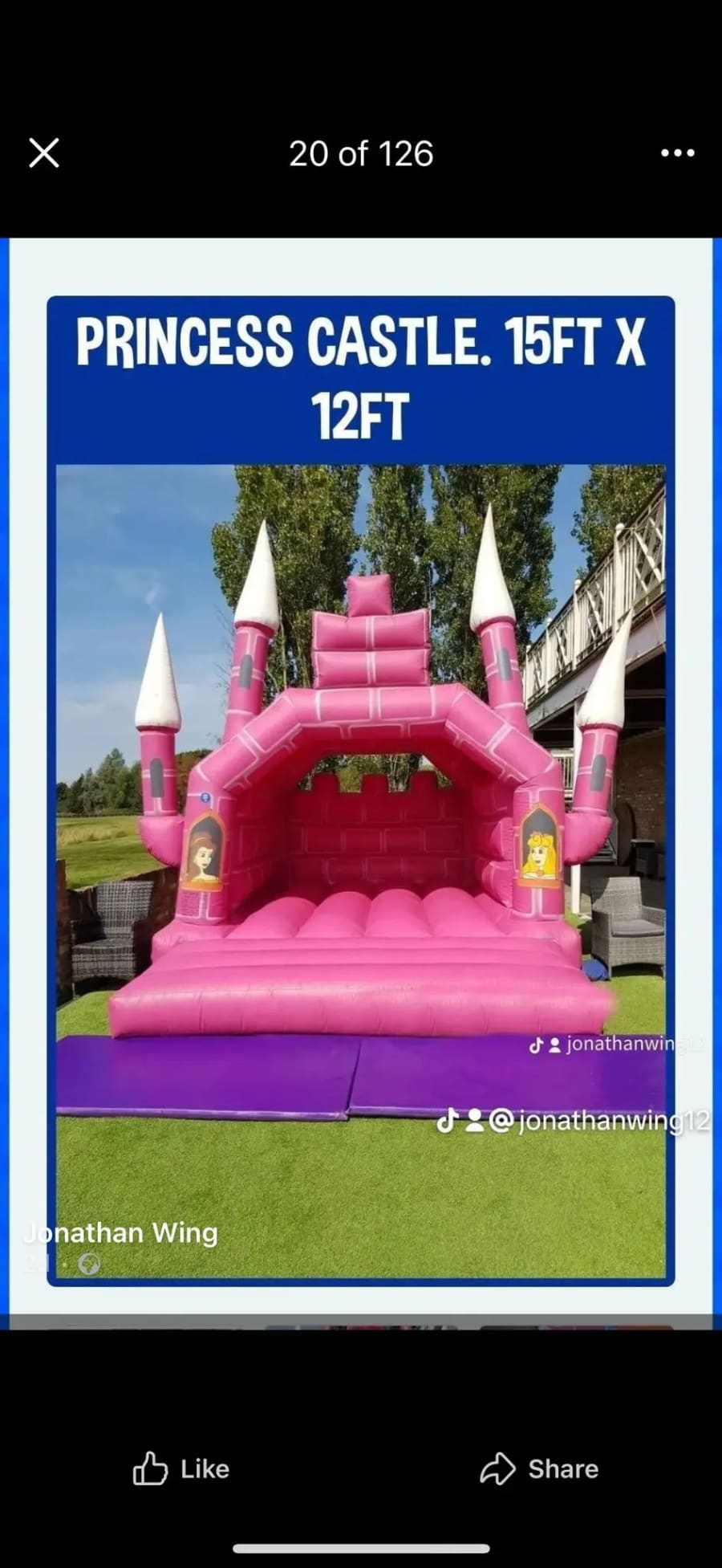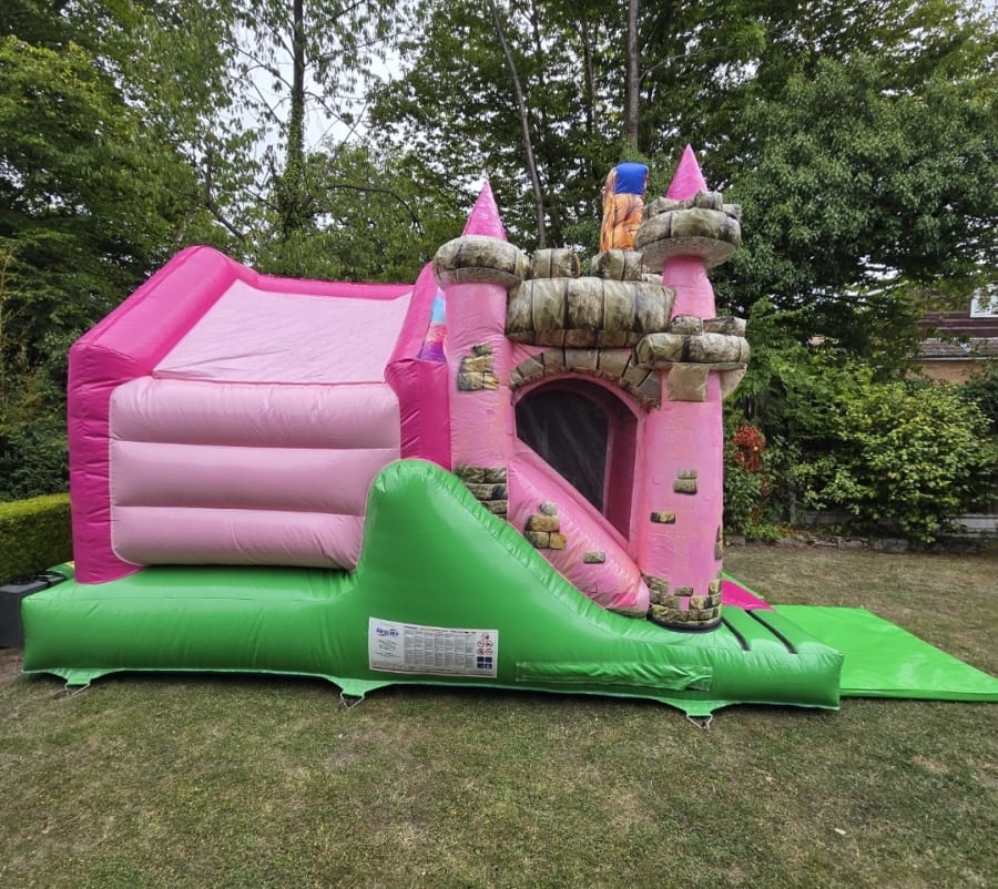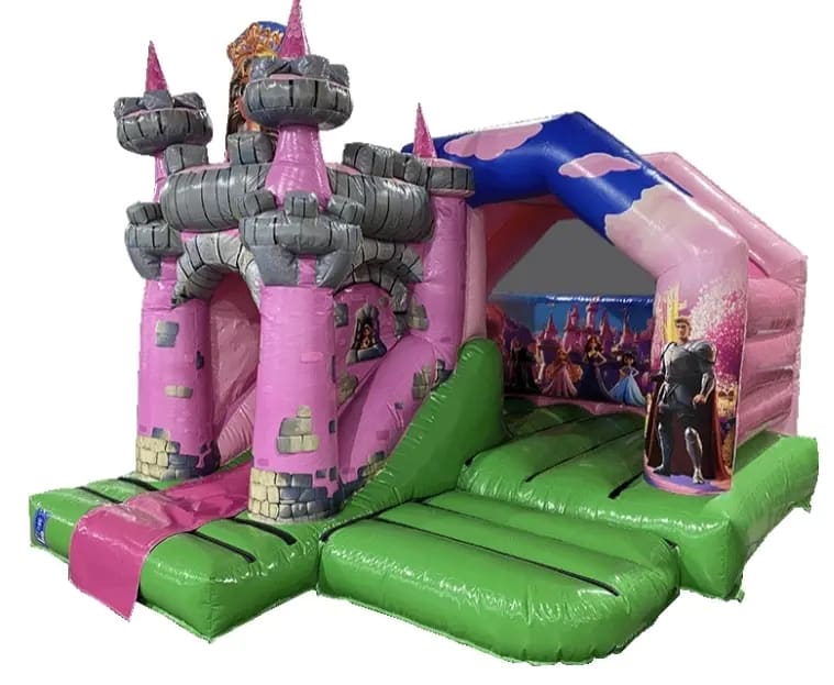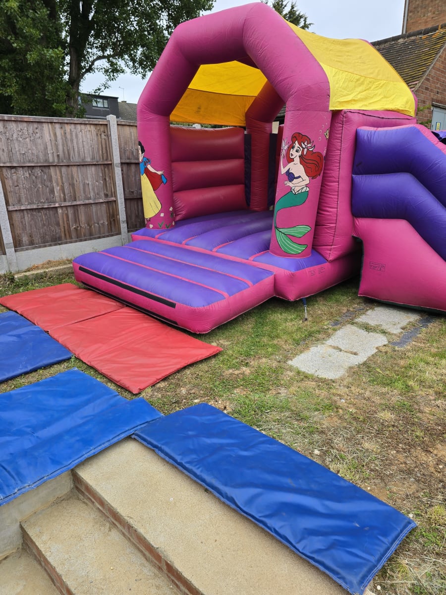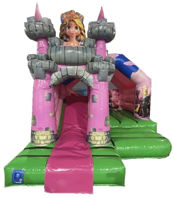 2 x Princess Bouncy Castle and Slide Combi,s.