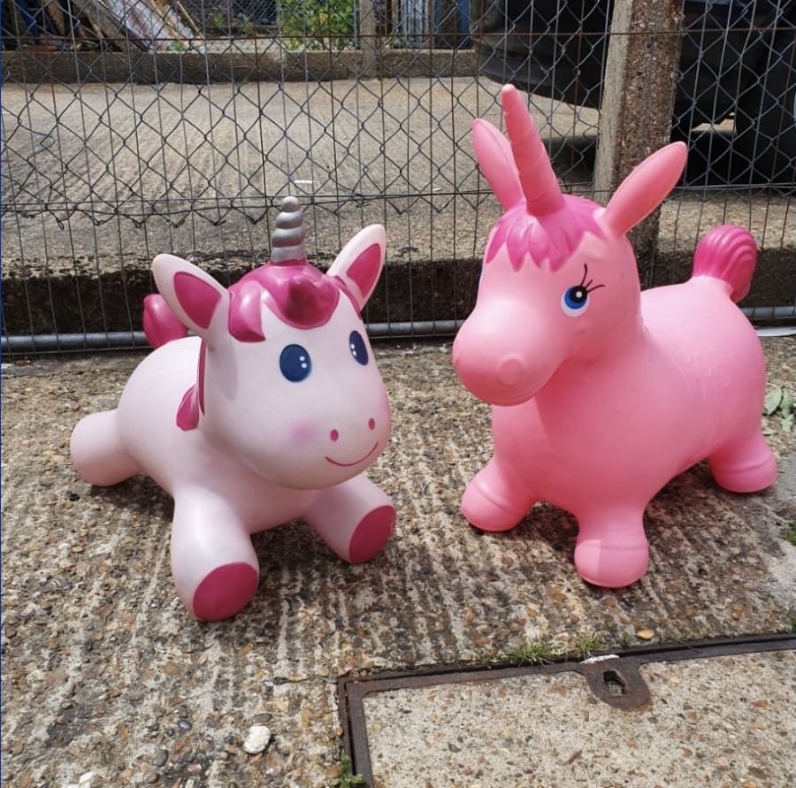 1 x Unicorn Ball Pool with Balls with some animal hoppers inside.