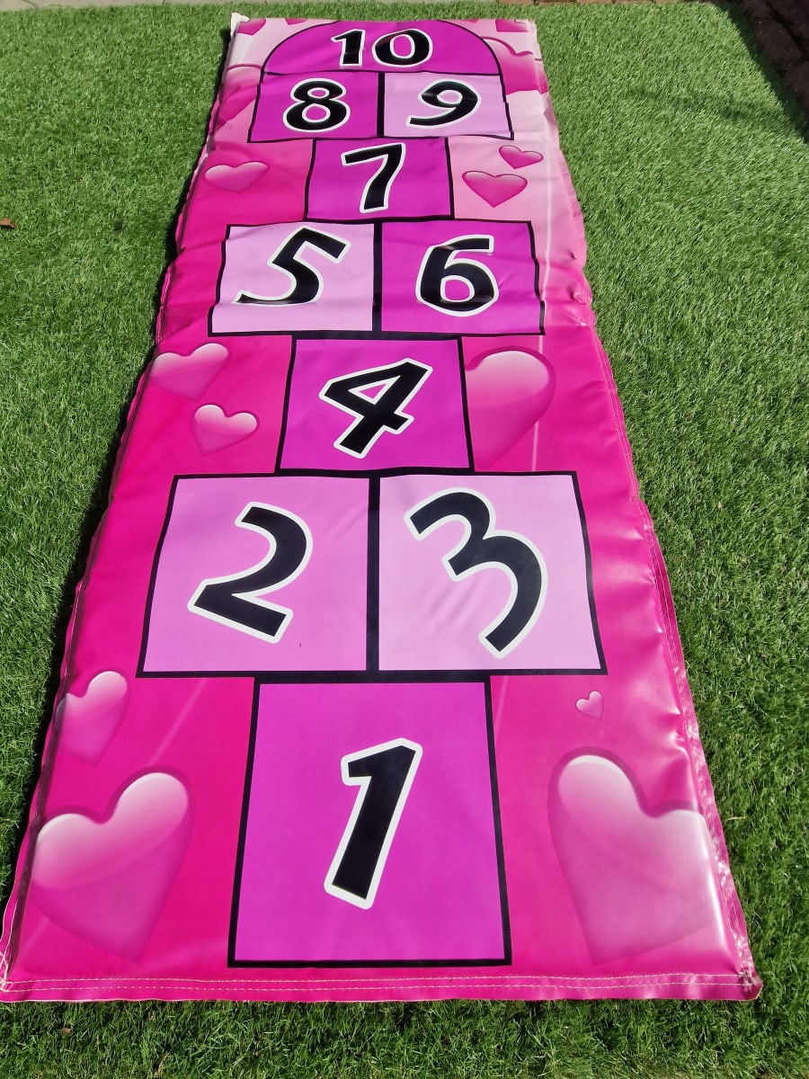 Lovely pink hearts HopScotch softplay game for all the family to play with bean bags.