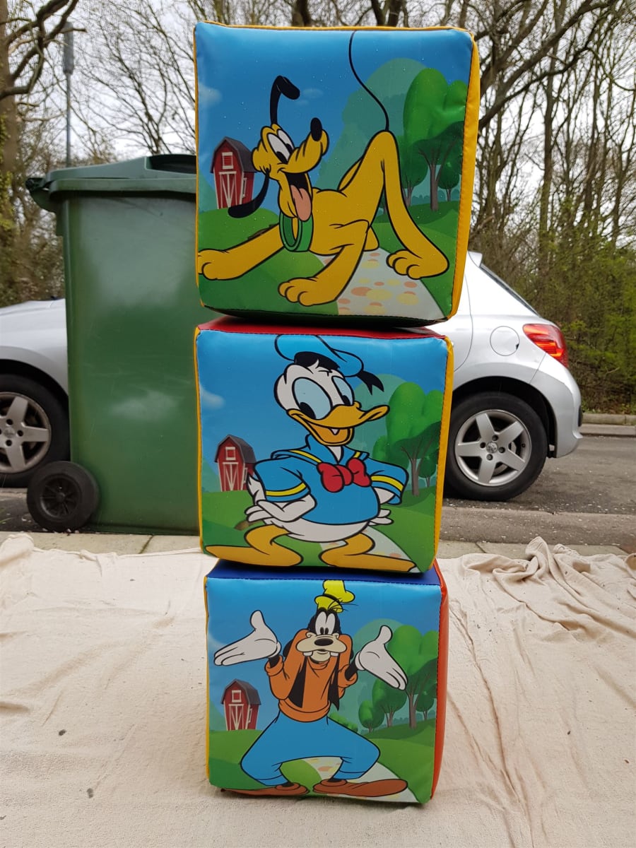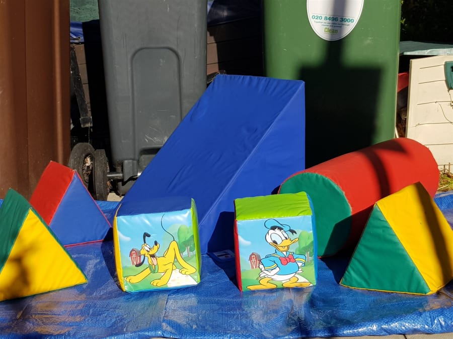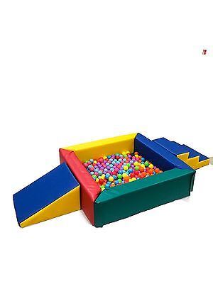 This is a 8 piece set. Contains ; 2 x picture cubes, 4 x small triangles, 3 x large Cubes, 1 x large Double seesaw. 1 x large triangle, 1 x rolling log. The large triangle is Supersoft. So as you can see it has a mix of soft play and goes with our coloured ball pool too. The ball pool comes with soft play steps and slide and with 300 soft play balls.