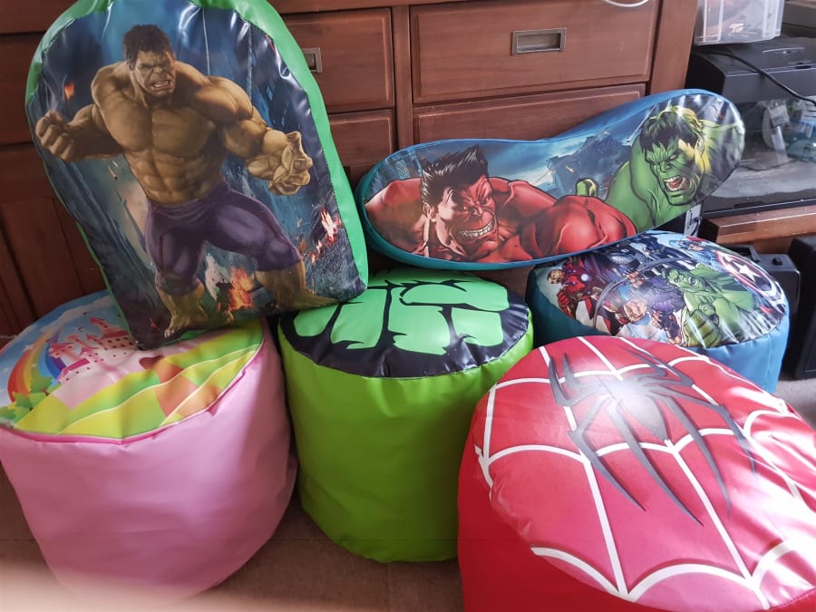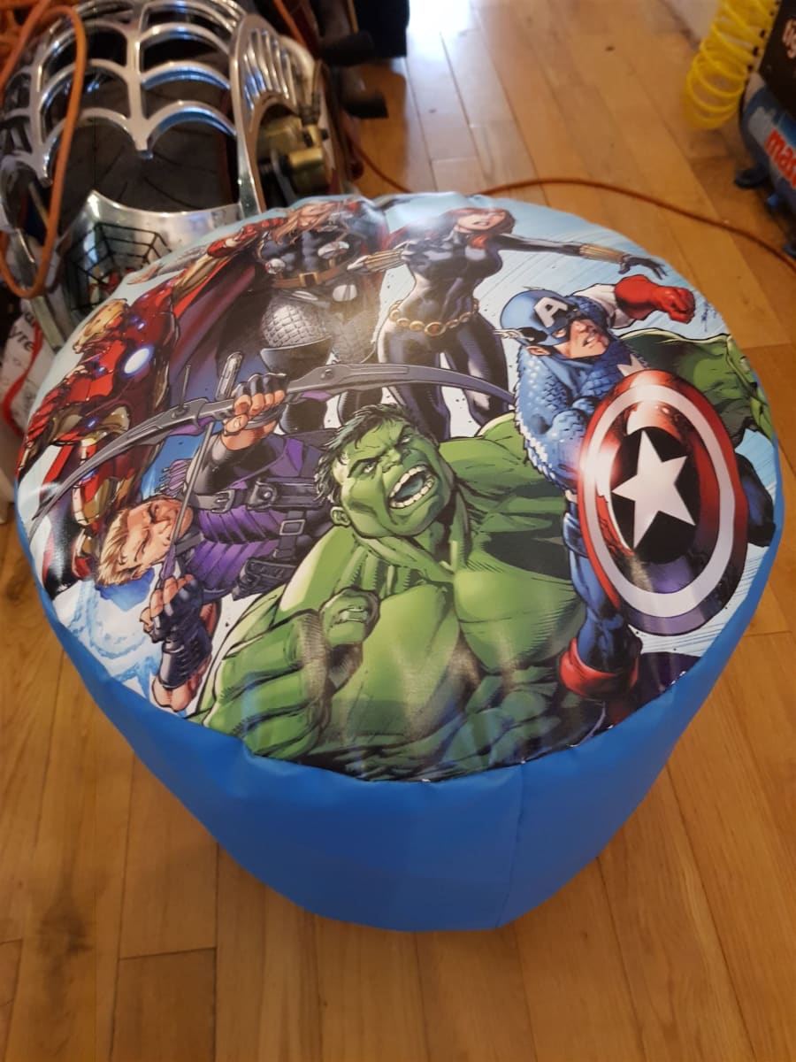 Superhero Pouffe's. Great to add on any soft play package, These are great for children to sit on while watching a Entertainer at your party or Musical Chairs.