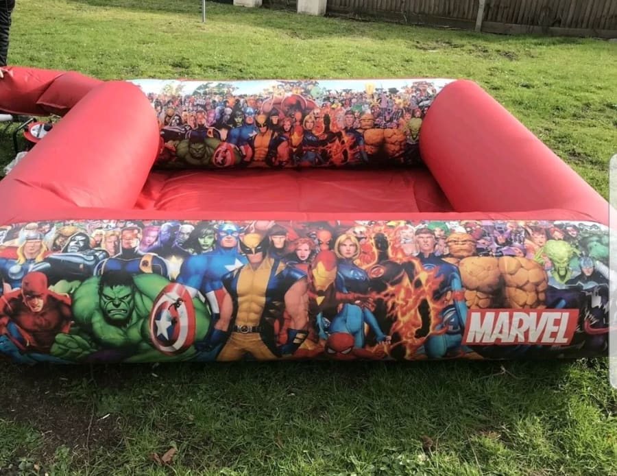 This Marvel / Superhero ball pool is a fantastic size of 8ft x 8ft, this is air filled and it has a built in base.