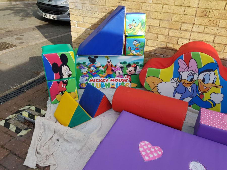 Contact us on 07853583712 I have my children holding some of the soft play to give you a scale on size as some are big . www.bouncingbonkerslondon.co.uk